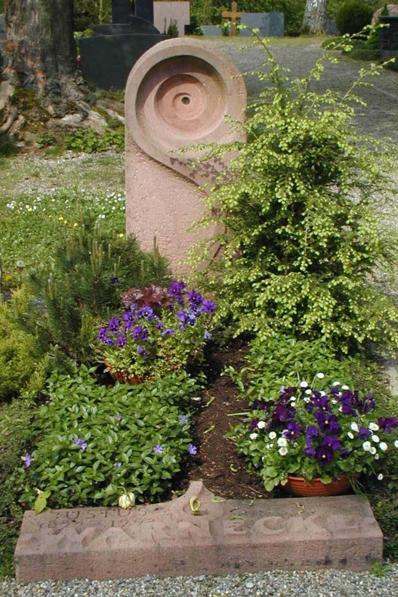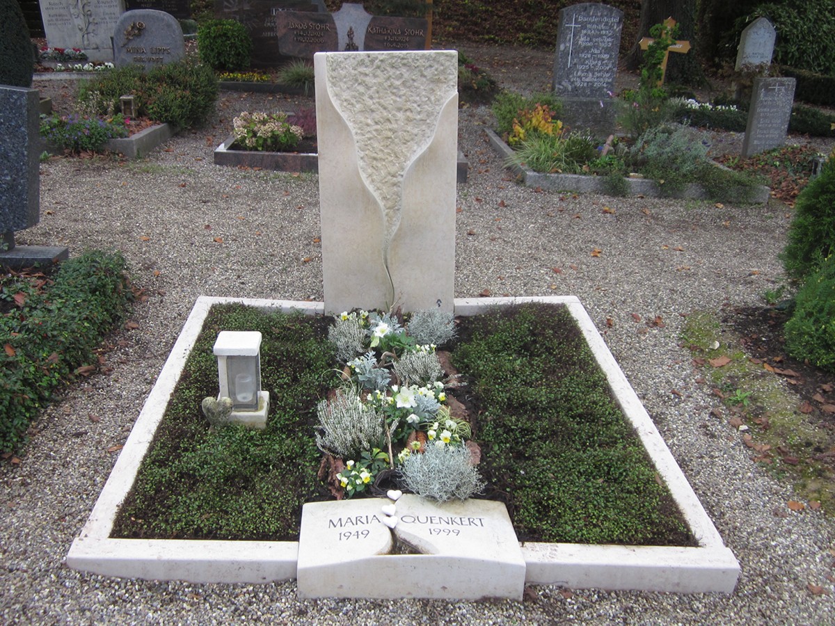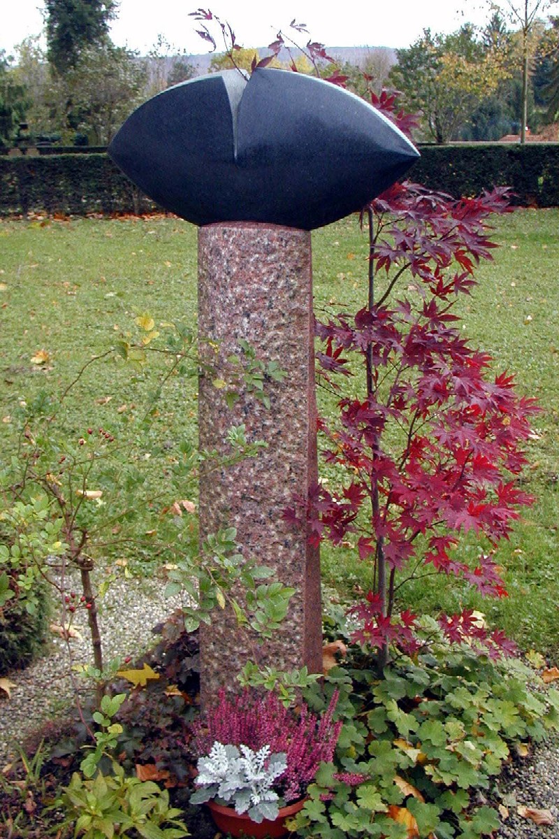 Diese drei Steine entsprechen meiner jeweiligen Formensprache. Die Gedenksteine sind eigenständige Kunstwerke, die nach Ablauf ihrer Friedhofszeit in Privatgärten Raum finden können. Die jeweilige Beschriftung befindet sich auf entsprechend gestalteten Elementen der Einfassung/Umrandung.