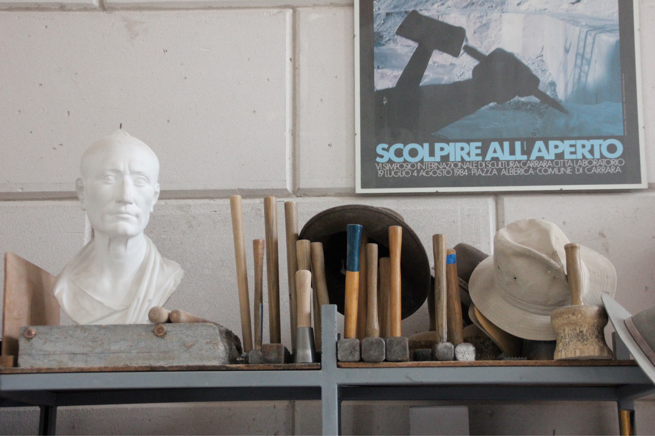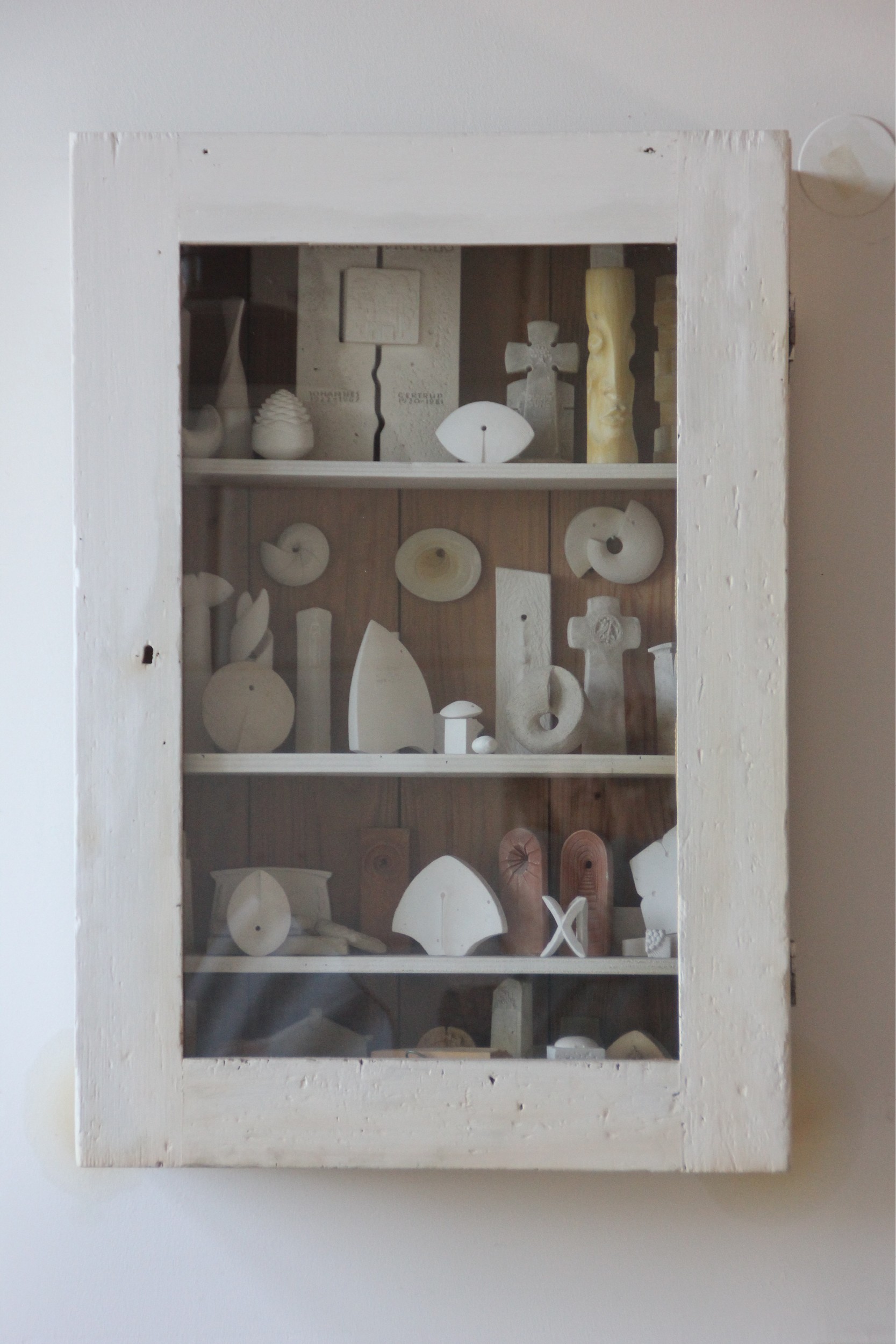 Eindrücke und Ausschnitte aus meinem täglichen Arbeitsbereich. R.u.: Sammlung kleiner Gipsmodelle zur Erläuterung meiner Entwürfe.